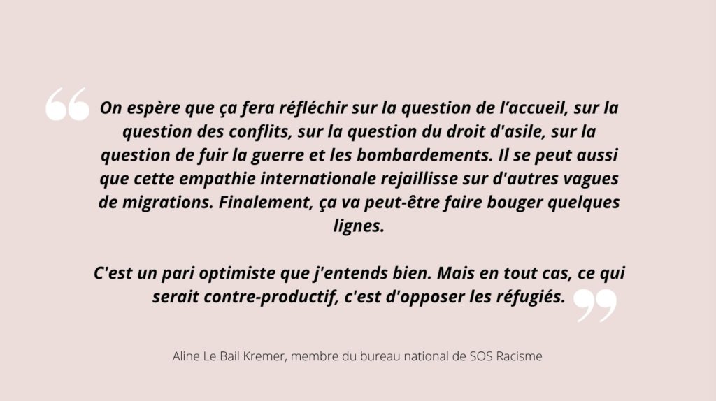 De cet élan de solidarité sans précédent pour la population Ukrainienne, le collectif SOS Racisme entrevoit une perspective de changement sur le long terme en matière de traitement des réfugiés :