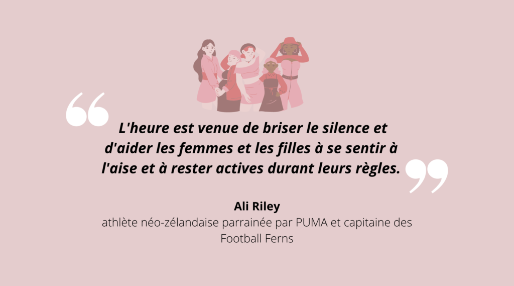 Le sondage a été réalisé à l’occasion de la sortie de la nouvelle collection Puma en collaboration avec Modibodi, une marque qui propose des vêtements et sous-vêtements étanches, dont des culottes menstruelles. Puma s’engage en faveur du sport féminin : « En tant que marque mondiale, il était important pour nous d’apporter notre pierre à l’édifice dans ce domaine » déclare Erin Longin, directrice mondiale, unité commerciale Course et entraînements, Puma.